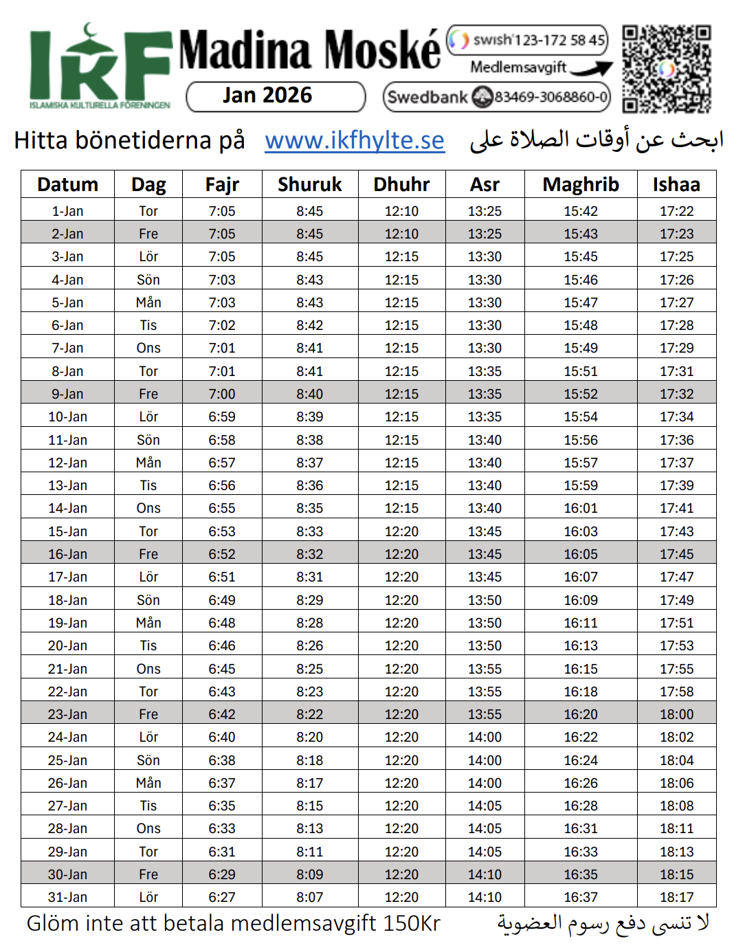 | Bön | Adhan | Iqamah |